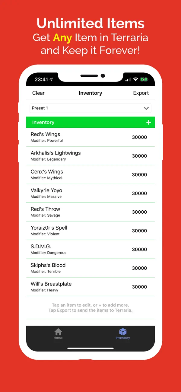• Add ANY item to your Minecraft inventory, even items with custom ids