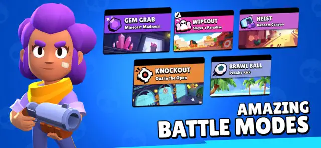 Gem Grab (3v3): Collect 10 gems to win. Showdown (Solo/Duo): A battle royale style fight for survival. Brawl Ball: Show off your soccer skills and score two goals.
