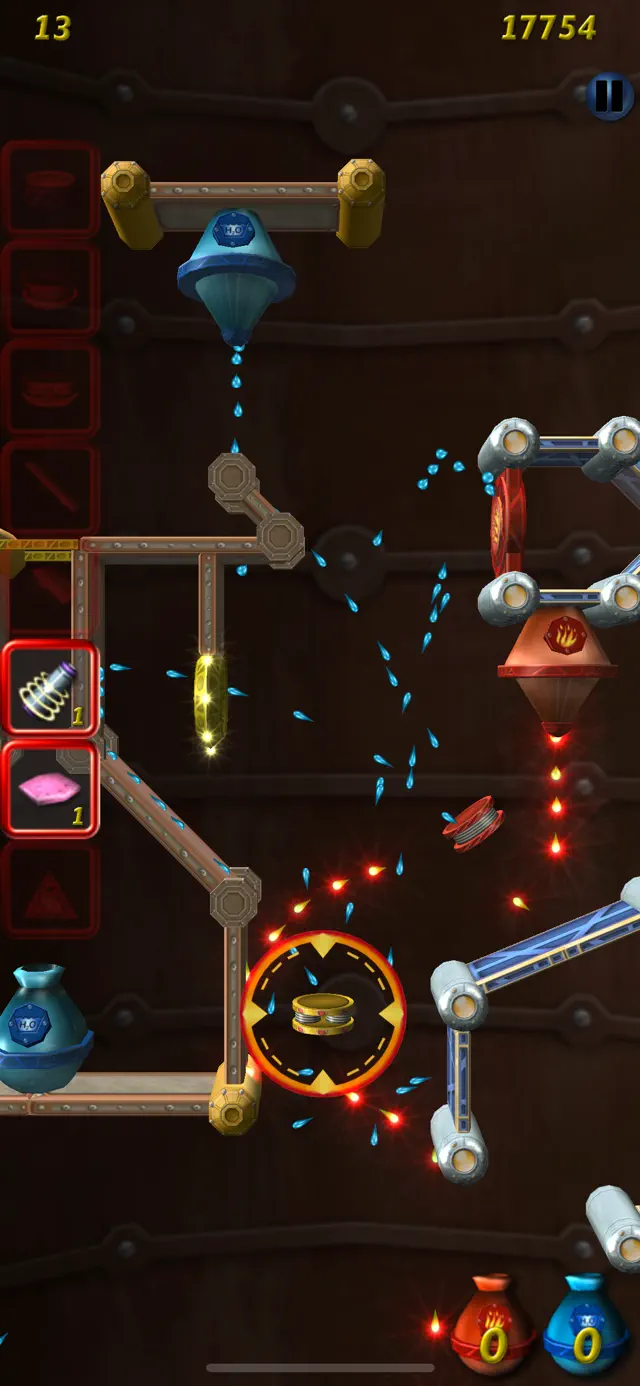 Each level provides specific tools. Drag bumpers to bounce fluid, slides to guide it, and accelerators to give it a speed boost. Remember that you can rotate items 360 degrees to fine-tune the trajectory of the droplets.