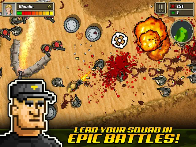 Kick Ass Commandos is a high-octane love letter to the 'bullet-hell' arcade games of the 80s and 90s. It captures that frantic, 'one-man-army' energy of Contra but with a modern, top-down perspective that works beautifully on mobile. The gameplay is loud, explosive, and unapologetically difficult. You start as a single commando, but as you rescue brothers-in-arms, your squad grows into a massive, wall-destroying machine.