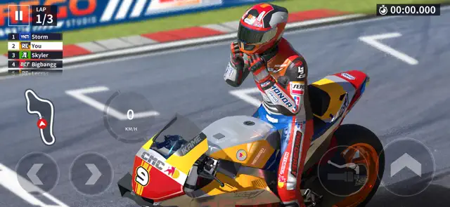 - Real motorcycle racing control: smooth physics and handling