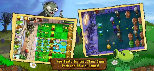 Conquer all 50 levels of Adventure mode — through day, night, fog, in a swimming pool, on the rooftop and more. Plus fend off a continual wave of zombies as long as you can with Survival mode!
