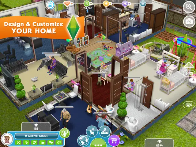 The Sims™ FreePlay lets you create, customize, design and build to your heart's content on mobile!