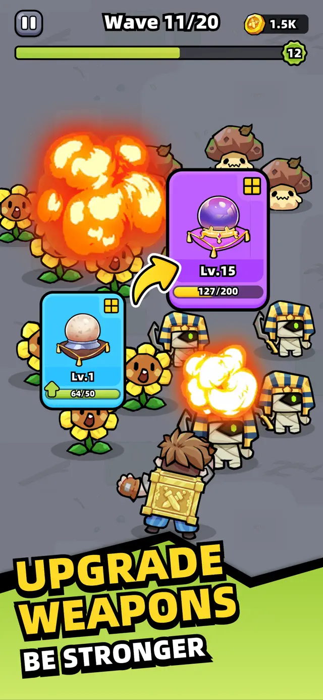 Don't think you can mindlessly tap your way to victory in Weapon Master. The game's roguelike system requires you to carefully select and upgrade different skills based on your available weapons and the current situation. Additionally, the various weapon combinations can lead to unexpected changes. When you face challenges, carefully consider your skill choices and weapon layouts to help you achieve a winning streak.