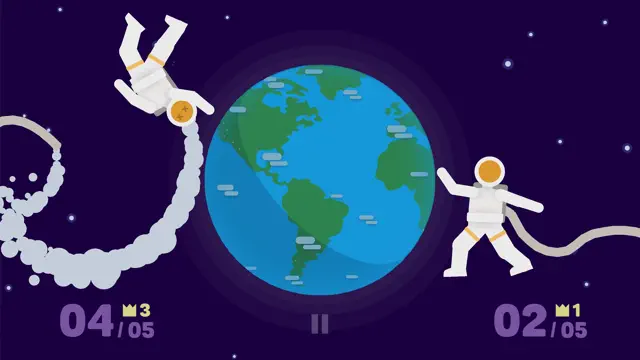 Challenge a friend in one of the six game modes. Compete head-to-head in modes like 'Destroy Cities' or 'Claim the Moon,' where timing and strategy determine the winner. The simple controls make it easy to jump in, but mastering the physics takes skill.
