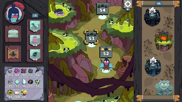 Progress through over 250 levels on Grindstone Mountain, each with unique enemy layouts and obstacles. Complete primary goals to advance, but tackle optional challenges for extra resources. The game gets harder the longer you stay in a level, so balance risk and reward.